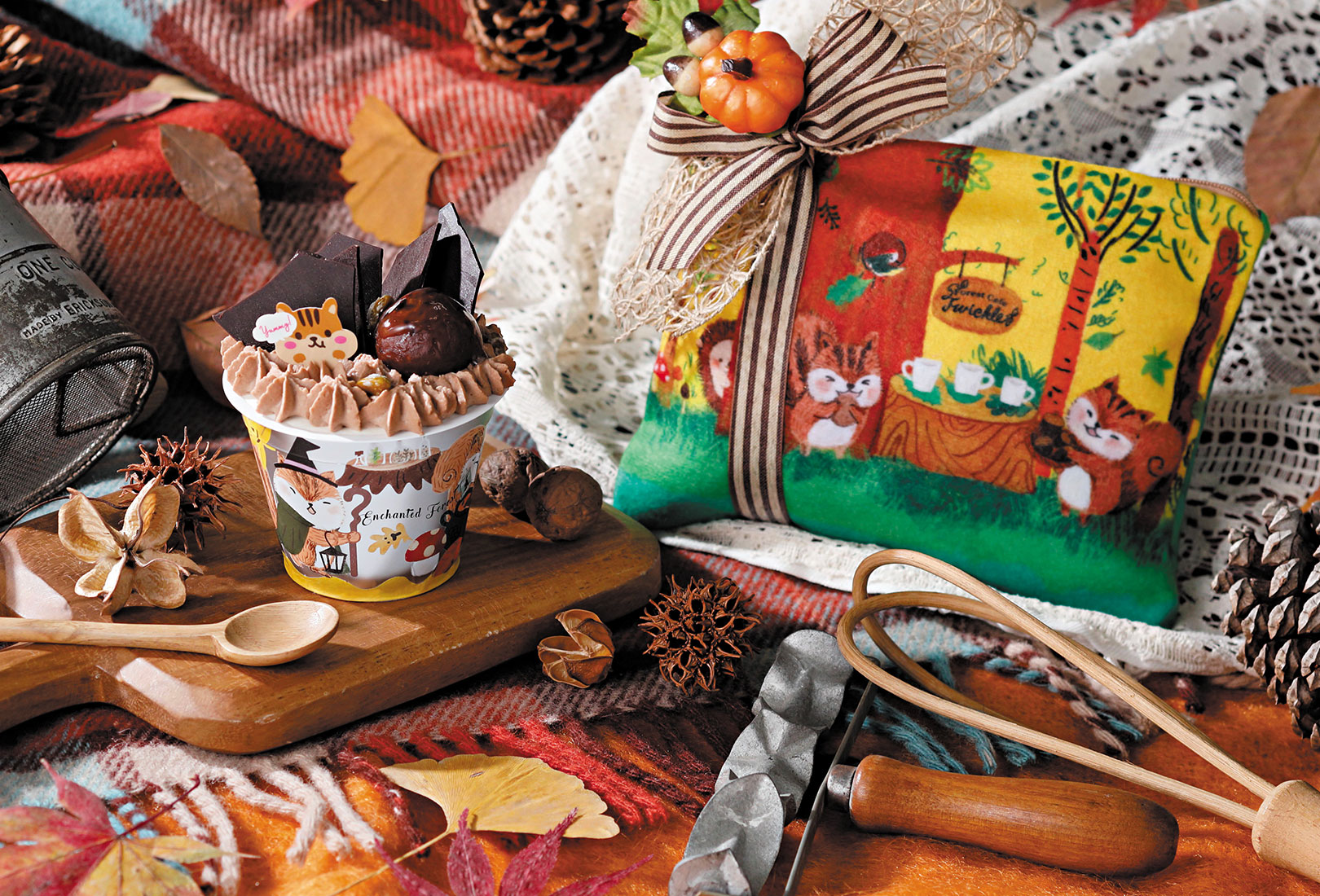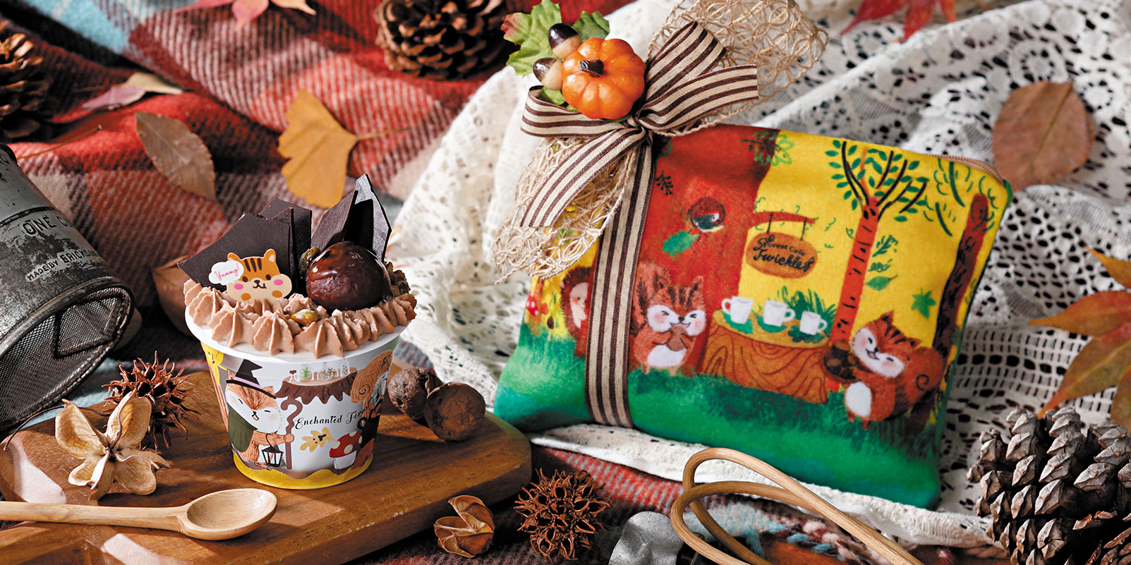 秋の森、“りすまる”が営むカフェのお話。木の実を集めて、新作スイーツを考えています。そんなほっこりあたたかいデザインが、秋冬シーズンにぴったりです。
